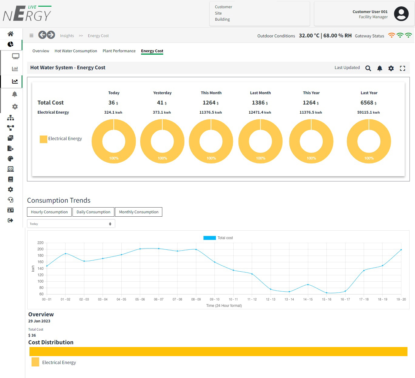 Nergy Live is an the IoT-based Building & Energy Management System (BEMS) hosted in the cloud and can be easily configured from the front-end. It operates on a SaaS model, requires low initial investment and can be easily scaled based on the needs of the organization. It is compatible with a wide range of hardware and offers a cost-effective solution with no licensing fees and a pay-as- you-go pricing model. The application is designed to improve energy efficiency, comfort, and minimize downtime in commercial facilities. It utilizes advanced control logics, cloud computing, data science, AI/ML, and provides accurate alerts and actionable insights to reduce energy consumption and improve occupant satisfaction. Cloud based algorithms enable adaptive control of temperature, ventilation, lighting and other building systems ensuring optimal energy efficiency, comfort and responsiveness to changes in the environment. The system supports remote management via web and mobile applications, allowing facility managers to access and control the building systems from any place, at any time.